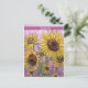 Girassóis Arte mostra nossa pintura original de um buquê de girassóis amarelos sobre um fundo rosado e roxo texturizado pintado por nosso talentoso artista, Traci Van Wagoner. Este belo design floral é um presente perfeito para ela no Dia de as mães, Dia de os namorados, aniversário dela, ou qualquer hora que você quiser iluminar o dia dela. Quem ama girassóis amará este buquê de flores! Brilhe sua casa hoje com nossa arte floral original. Você não pode dar errado com um dom de flores.