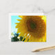 Fechamento de girassol. Esta brilhante impressão de uma abelha de mel solteiro, colhendo pólen de um girassol gigante, vai iluminar o dia de qualquer um. As pétalas amarelas se enrolam ao redor das bordas, com céu azul claro no canto.