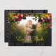 Girassóis russos e buquês rosas com folhagem verde e folhas com luzes de cordas no obrigado de fotos de madeira castanha escura, você elegante cartão postal de casamento com um roteiro de tipografia de ouro-chico. +++++++ Personalize com seus nomes, fotos e texto! +++++++++ Adequado para o verão floral ou para os casamentos temáticos de quintais de quintal de outono.