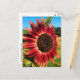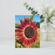 Uma bela e brilhante manhã de verão no Oregon. Um girassol vermelho único com uma abelha.