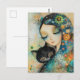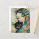 CARTÃO POSTAL GIRL AND CAT ART JIGSAW PUZZLE