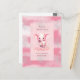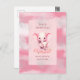 A cute baby girl shower invitation on a pale pink cloudy and starry sky with a pink scalloped rectangle enclosing a little pink elephant.