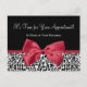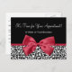 Um cartão-postal com uma fita vermelha e preto-e-branca de impressão-leopardo e um salão de beleza, amarrado em um arco bonito. Personalize este design de impressão na moda, adicionando o nome de hairstylist ou de bela. Imagem impressa plana, não arco real.