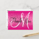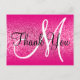 Cartão Postal Girly Rosa Brilhante Gradiente Monograma Obrigada