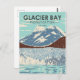 Trabalho de arte de vetor do Glacier Bay Park em um design de estilo de janela. O parque é uma terra natal, um laboratório vivo, um parque nacional, uma natureza selvagem designada, uma reserva da biosfera e um patrimônio mundial.