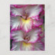 Lindas flores brancas de gladiola com cartão-postal cor-de-rosa