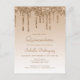 Este convite da moda quinceañera apresenta uma borda de brilho de ouro brilhante e borda ombre. A palavra "Quinceañera" e o nome do convidado de honra aparecem na escrita casual de ouro, com o resto do texto personalizável na fonte dourada sans serif.
