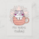 Cartão Postal Glitter Faux, Gato Fofado na Mug de Café