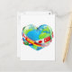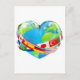 Uma ilustração de um globo terrestre mundial em forma de coração com as bandeiras de muitos países diferentes voando ao seu redor.