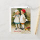 Um charmoso cartão de Natal sueco mostrando duas crianças. Parece que o menino talvez tenha uma mensagem especial para a garotinha.