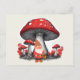 Cartão Postal Gnome e Cogumelos Vermelhos Gigantes