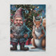 Cartão Postal Gnome e Esquilo Natalino Festivo Mal-Humorado