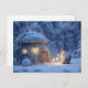 Cartão Postal Gnome with a Lantern Outside a Snowy Stone Hut