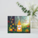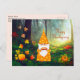 Gnomo bonito com torta de abóbora, folhas de outono e cartão postal de abóboras. Um tempo de gratidão e abundância! O texto pode ser personalizado. Ideal para todos.