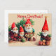 Adoráveis gnomos de jardim celebrando o Natal! Texto no topo: Feliz Natal
