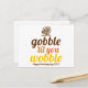 Este cartão postal é perfeito para Ação de Graças! Tem uma tipografia divertida e ousada que diz 'Gobble 'até você balançar' em cores quentes e confortáveis de queda como marrom, amarelo e laranja. E tem um peru fofo também! Você pode personalizá-lo e enviar este cartão postal para seus amigos e família para desejar a eles uma Ação de Amizade Feliz ou Ação de Graças e fazê-los sorrir com a frase legal. É uma maneira excelente de mostrar seu amor e apreço durante este feriado especial. Então, não hesite em pegar esse cartão postal e espalhar alegria nesta temporada de Ação de Graças!