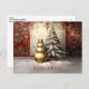 Cartão Postal Gold Snowman Christmas Tree Holiday Postcard