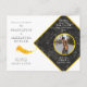 Elegant, and modern gold foil graduation party invitation. Easily personalize the design by adding the graduate's name, and graduation year, to create a unique party invitation card to announce your graduation and the graduation party. Use your school color scheme to change the cap topper colors.