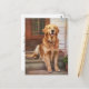Este cartão-postal apresenta um lindo golden retriever esperando seu dono voltar para casa.