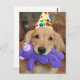 Cartão Postal Golden Retriever Com Chapéu de Feliz Aniversário e