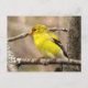 Este cartão-postal apresenta um belo coitadinho de goldfinho empoleirado num galho. Ele é um pássaro maravilhoso com bico de laranja, asas pretas e penas puras amarelas. A música dele parece o twitter original!