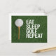 Compartilhe o seu amor pelo golfe com este cartão postal vibrante com uma bola de golfe com relva verde e a frase divertida, "Coma o Golfe do Sono Repito." Perfeito para entusiastas do golfe, convites para torneios ou simplesmente enviar uma mensagem esportiva para amigos e familiares. Personalize-o para torná-lo exclusivamente seu!