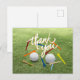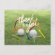 Cartão Postal Golf Obrigado com bola de golfe e tee no green
