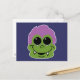 O sorriso adorável tem pele verde, cabelo roxo, presas e olhos de suor. Um presente divertido para o Halloween ou todos os dias.