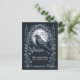 Defina o tom para um clima noturno místico com este cartão postal gótico de corvo. Os visuais apresentam uma silhueta de lua cheia impressionante, combinada com detalhes intricados de videira renderizados em uma paleta de azul meia-noite profundo. É a maneira perfeita de celebrar um cumprimento assustador de Halloween ou um presente atencioso para um fã de literatura gótica.