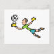 Um goleiro de futebol salta do chão no trecho do cheio para parar o lado do ataque marcando um gol. Gráfico de jogos para fãs de futebol.