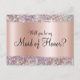 Gradiente simples rosa dourado com brilho falso holográfico colorido na frente. A cor pálida da parte traseira deste design de cartão postal pode ser alterada para branco ou outra cor, se necessário. O brilho falso é criado com um gráfico digital. Crie seus próprios cartões-postais me convidando na sua festa de casamento. Você será minha Madrinha de casamento? Facilmente adaptado a... Você será minha dama de Bridesmaid?