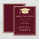 Cartão Postal Graduação Clássica Dourada Burgundy Salva a Data