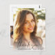 Obrigado de graduação elegante que você faz com que a foto do formando seja sobreposta com "obrigado você" em uma escrita moderna de chic e seu nome, escola e ano de aula em uma simples tipografia. Ao contrário, personalize um obrigado que você envia e adicione o nome do formando em um script semelhante a assinatura.