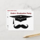 Divirta-se com esse bobo e bigode divertido inspiraram a graduação no cartão-postal temido. O gráfico apresenta um conselho ou boné de formatura de argamassa. Perfeito para uma festa de bigode de graduação, guarde a data, o cartões de agradecimentos, o anúncio e muito mais. O tamanho, a cor e o estilo da fonte de texto podem ser alterados para ajustado no seu próprio estilo design.