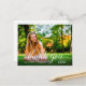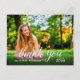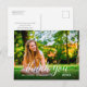 Este obrigado de graduação que você faz no cartão-postal apresenta um quadro fotográfico personalizado que preenche toda a frente. O texto da caligrafia moderna "obrigado você" aparece em branco no topo da foto. Adicione seu próprio obrigado pessoal que você envia no verso.