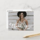 Graduação de Foto com Script Retro Branco em Branco Obrigado Cartão-Postal | Envie obrigados com este obrigado paisagístico personalizável que você postais. Apresenta a escrita retrô e a tipografia simples. Isso será perfeito para casamentos, graduações e muito mais.