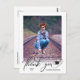 Este simples obrigado de graduação de fotos que você faz o cartão-postal apresenta o moderno roteiro "obrigado você" que aparece abaixo da foto vertical. O backside oferece texto personalizado para uma mensagem de obrigado pessoal.