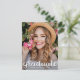 A palavra "formando" em um script branco elegante junto com o nome do formando e o ano da classe (ou excluir essa linha) SALVE OS cartões postais DATE para sua Festa de formatura ou Cerimônia de Graduação. Adicione a mesma foto ou diferente no verso *DICA: nós redimensionamos a mesma foto para um layout horizontal antes de carregá-la para o verso e ela está por trás de uma camada transparente para seu texto é fácil de ler. Mais designs na nossa loja.