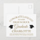 Cartões postais de convites de graduação de texto de script personalizado elegante. Texto em ouro falso totalmente personalizável em fundo branco. Todas as cores são editáveis. Estes cartões postais são excelente de anúncio de graduação, convite para o dia de graduação, festa de formatura, etc Você pode personalizá-lo e torná-lo exclusivo.