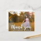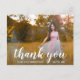 Obrigado de graduação moderna, seu cartão-postal com "obrigado você" em uma tipografia elegante de letra branca, juntamente com "por celebrar comigo" em uma letra sans serif, sobre sua foto favorita. O backside tem seu endereço de retorno junto com sua mensagem pessoal em ouro sobre um fundo branco. Você pode excluir o modelo se quiser escrever manualmente sua mensagem. Este simples e bonito obrigado que você faz é perfeito para um formando feminino.