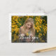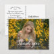 Diga obrigado ao estilo com este cartão postal com sua foto realçada com uma letra de script de aparência manuscrita chic que lê "Obrigado" ou mude para seu texto personalizado. Adicione seu nome e data de conclusão à frente e digite sua nota de agradecimento personalizada no verso. Se preferir escrever manualmente a sua nota, basta apagar o texto para criar espaço para a sua mensagem. Seus convidados vão adorar ver sua foto de formando ou foto da sua formatura e receber sua nota de agradecimento atenciosa.