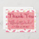 Um cartões de agradecimentos cor-de-rosa personalizado para mostrar aos seus hóspedes o quanto adorava a sua presença, este cartões de agradecimentos de graduação apresenta um adorável boné rosa e design de diploma num fundo branco. Faça seu pedido hoje mesmo! Fundo: Design por Huckleberry Hearts, LLC, © www.Huckleberry-Hearts.com