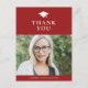 Envie obrigados para sua família e amigos por seu amor, presentes e mensagens com este obrigado de graduação personalizável que você faz o cartão-postal. Ele apresenta um boné formando e uma tipografia clássica em um fundo vermelho. Personalize este cartões de agradecimentos vermelho adicionando sua foto, nome e mensagem. Este obrigado de fotos de graduação que você faz do cartão está disponível em outras cores e estoque de papelão.