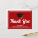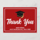 Este cartão postal moderno de agradecimento ao graduado personalizado em vermelho e branco apresenta um obrigado manuscrito elegante acima do nome da sua escola ou faculdade para a turma de 2025. Personalize com seu nome sob a capa de graduado preta para ótimos cartões postais personalizados de agradecimento ao graduado.