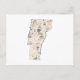 Um cartão postal de ilustração vintage, com um gráfico antigo na forma do mapa da silhueta do estado Verde Montanha de Vermont, é uma forma excelente de manter contato com seus amigos e entes queridos e lembrá-los da beleza do estado que eles amam.
