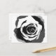 Este gráfico de rosa preto e branco (uma fotografia posterizada de um rosa florescido em close) mostra a singularidade da floração da rosa.