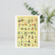 Este cartão postal é uma reprodução de um gráfico antigo que mostra traduções do japonês para o inglês com ilustrações.
