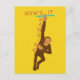Pergunte a eles o que está acontecendo de forma divertida com este cartão postal que apresenta uma ilustração de um macaco pendurado em uma barra junto com a frase COMO ESTÁ PENDURADO O gráfico marrom e bege é definido contra um fundo amarelo brilhante. O verso deste cartão postal está em branco para você escrever sua própria mensagem.