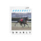 Cavalo fugitivo Gnarly, correndo pelo trecho em Aqueduct com suas rédeas penduradas e flutuando através da brisa de inverno. Gnarly perdeu seu jóquei no meio do trecho.