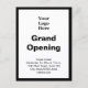 Front: A display image is at the top. You can replace the image with your logo. "Grand Opening" is in the center. Lines of black display text for your invitation message (i.e. you're invited, date, time, and address) are at the bottom. The front has a black border.